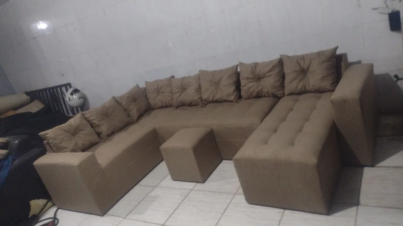 Sofá de canto ideal para sua sala, com design moderno e almofadas aconchegantes. Perfeito para relaxar e receber amigos e familiares meu zap