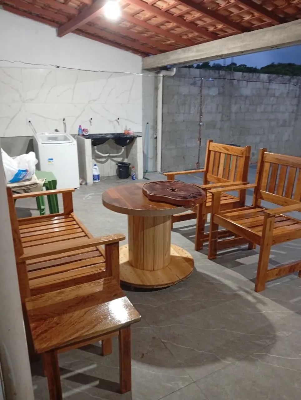 Conjunto de sofás em madeira angelim pedra, ideal para quem busca beleza e durabilidade. Perfeito para compor sua área de lazer, varanda ou sala de estar, proporcionando um ambiente acolhedor e elegante.