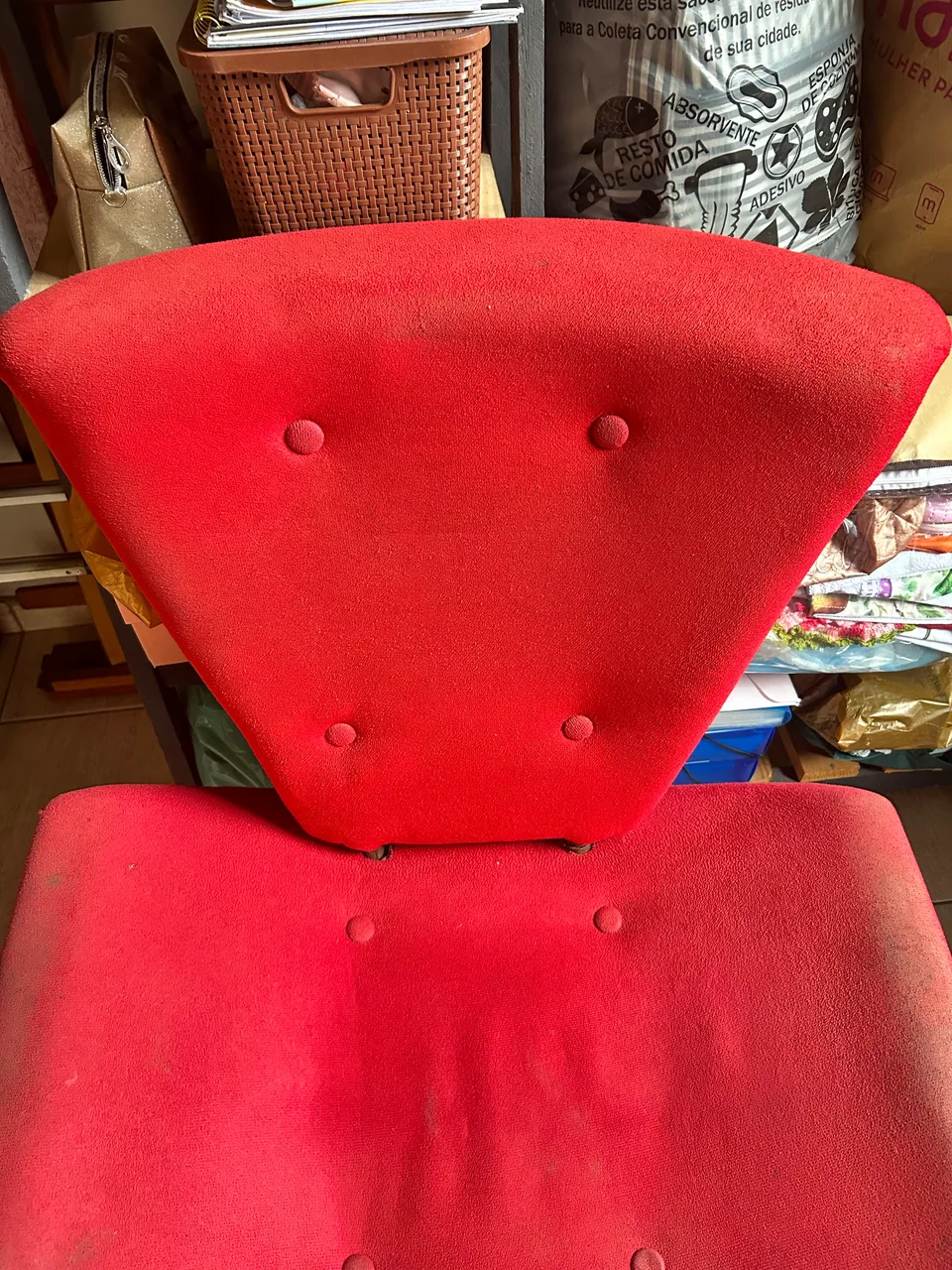 Linda poltrona vermelha, ideal para dar um toque de cor e elegância ao seu ambiente. Está com marcas de uso porém é só trocar o estofado.