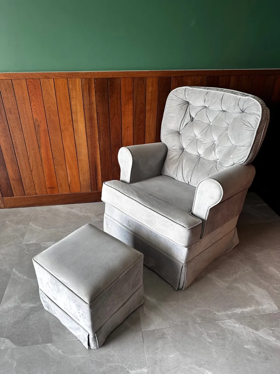 Poltrona de veludo com puff