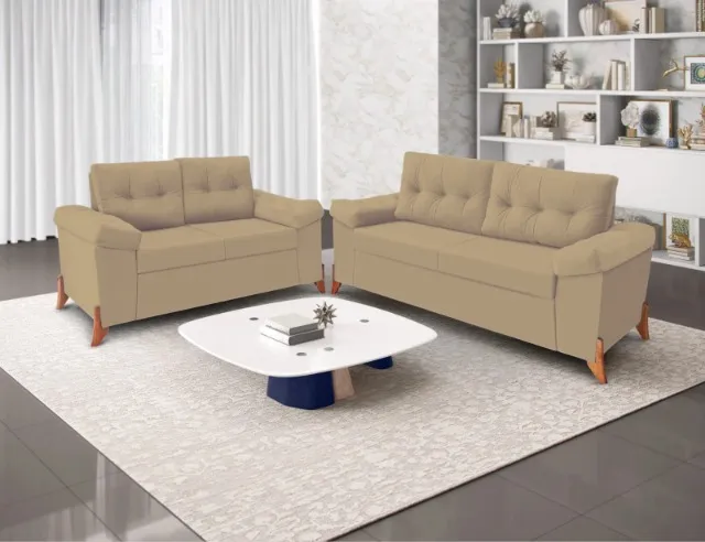 Este conjunto de sofá de 2 e 3 lugares, é a combinação perfeita de conforto e sofisticação para sua sala de estar. Com design moderno e funcional, ele é ideal para aproveitar momentos de descanso e lazer em família ou com amigos. A estrutura em madeira de eucalipto reflorestado garante durabilidade, enquanto o estofado com espuma de alta qualidade e revestimento 100% suede proporciona um toque macio e confortável. Perfeito para quem busca praticidade e elegância, este é a escolha ideal para tornar seu ambiente ainda mais aconchegante e estiloso.