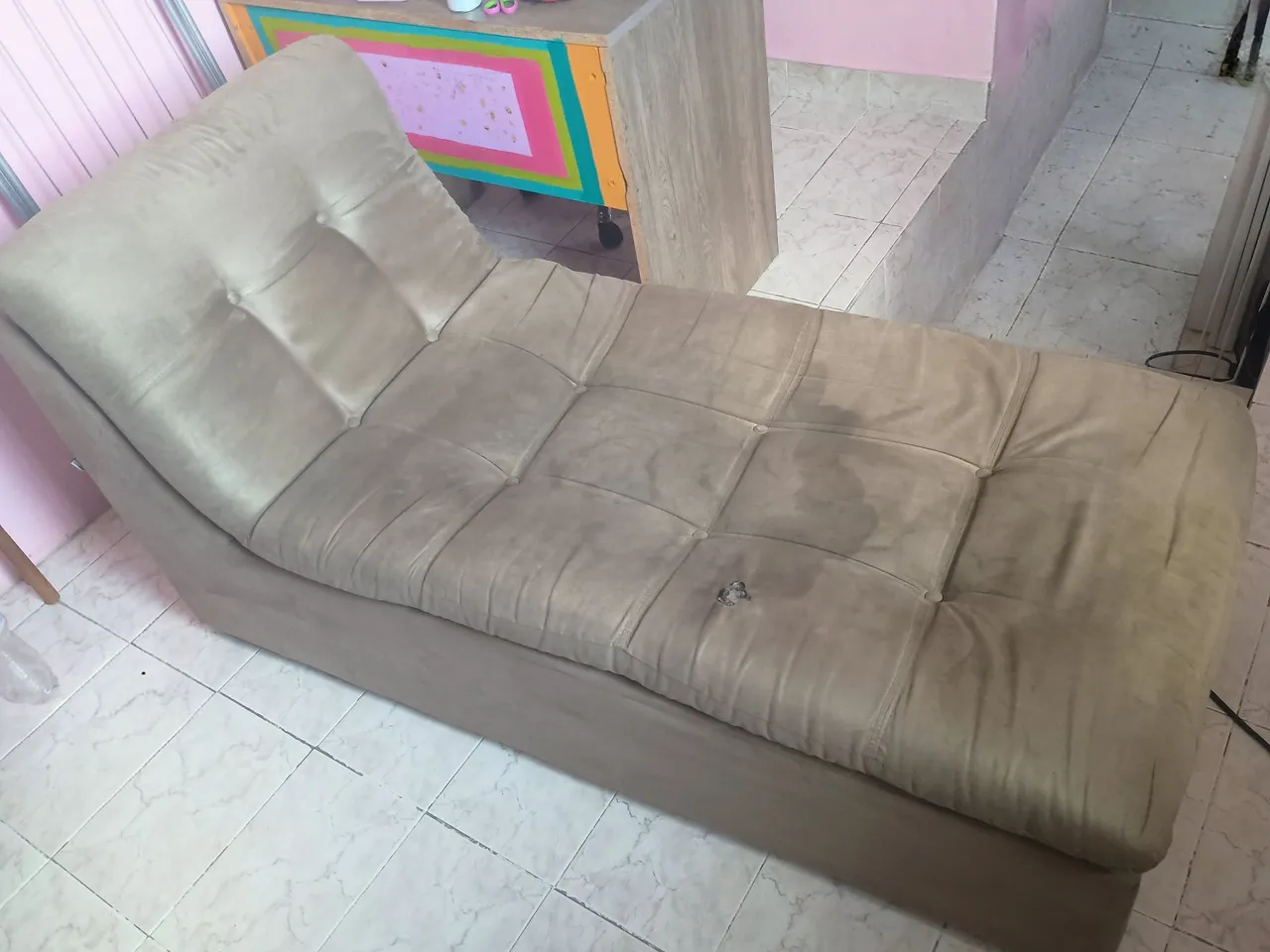 Sofá confortável que pode ser utilizado como cama de solteiro, ideal para kitnets, quartos de hóspedes ou pequenos espaços.