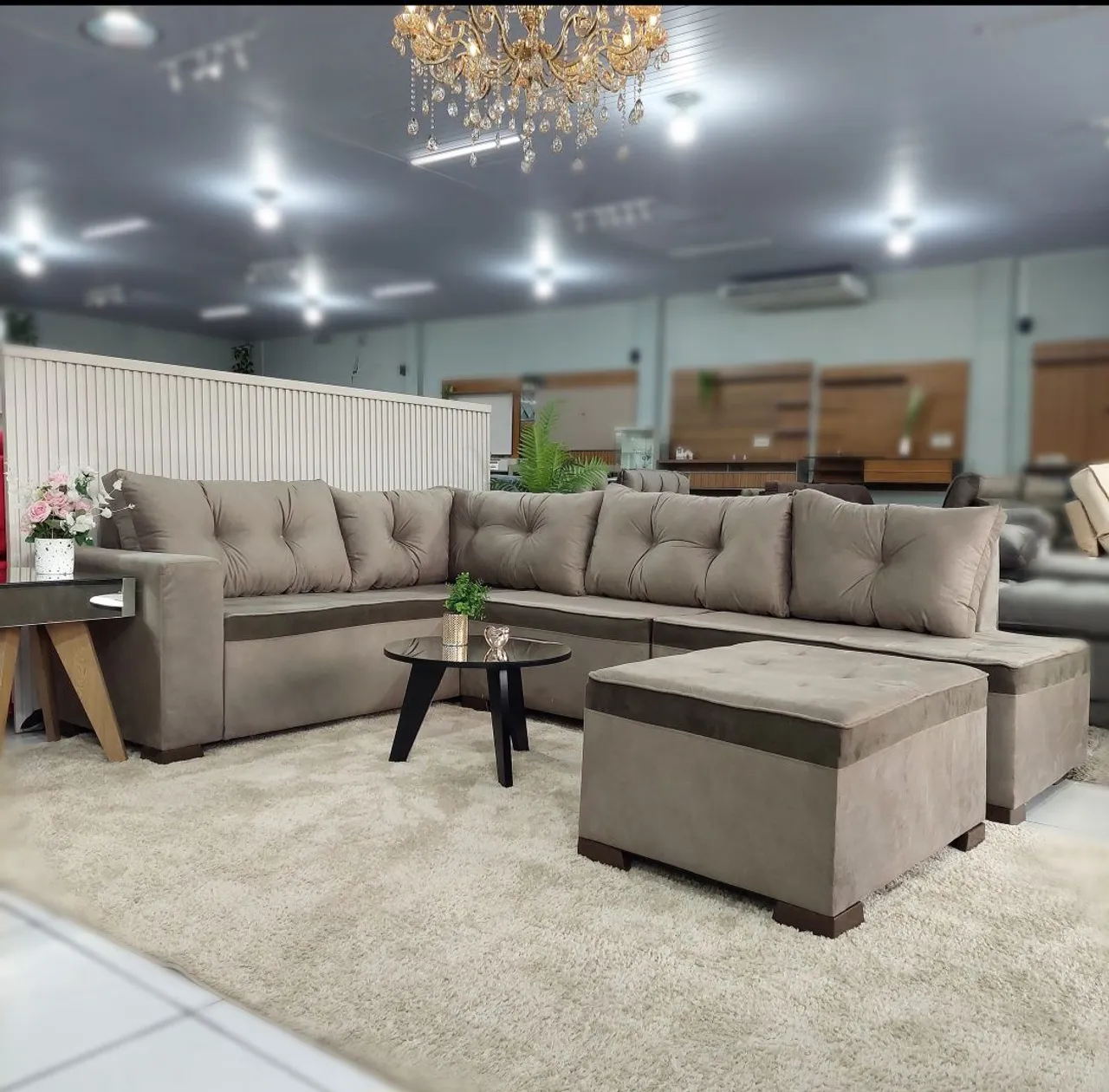 Desfrute do conforto e elegância com este sofá de canto espaçoso, perfeito para acomodar toda a família. Com seus 8 lugares e puff adicional, este sofá oferece o espaço ideal para relaxar e receber convidados. Seu design moderno e sofisticado transformará sua sala em um ambiente acolhedor e convidativo.