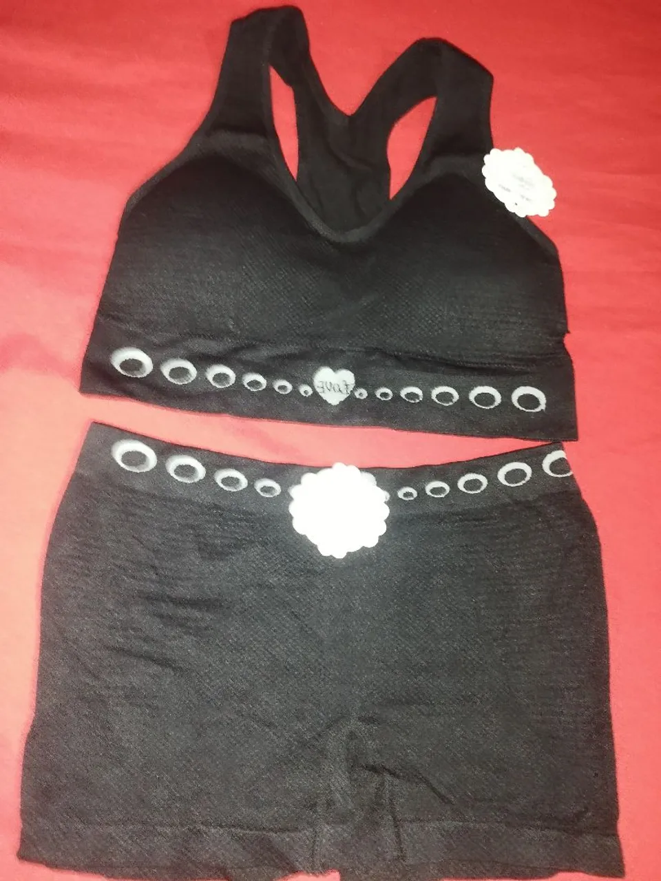 Conjunto fitness preto, ideal para suas atividades físicas com conforto e estilo. O top e o short combinam design moderno e tecido respirável.