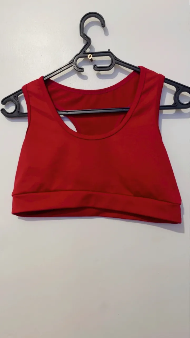 Top de treino Leegue vermelho, ideal para atividades físicas com conforto e estilo. Design moderno e tecido respirável. Qualquer uma por apenas 15,00 Meu zap