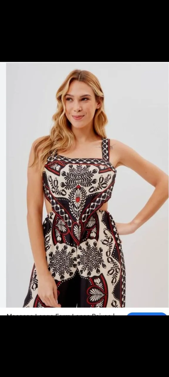 Desperte a sua beleza com este macacão estampado, uma peça que une estilo e conforto. Perfeito para um visual marcante em qualquer ocasião. Veste até G