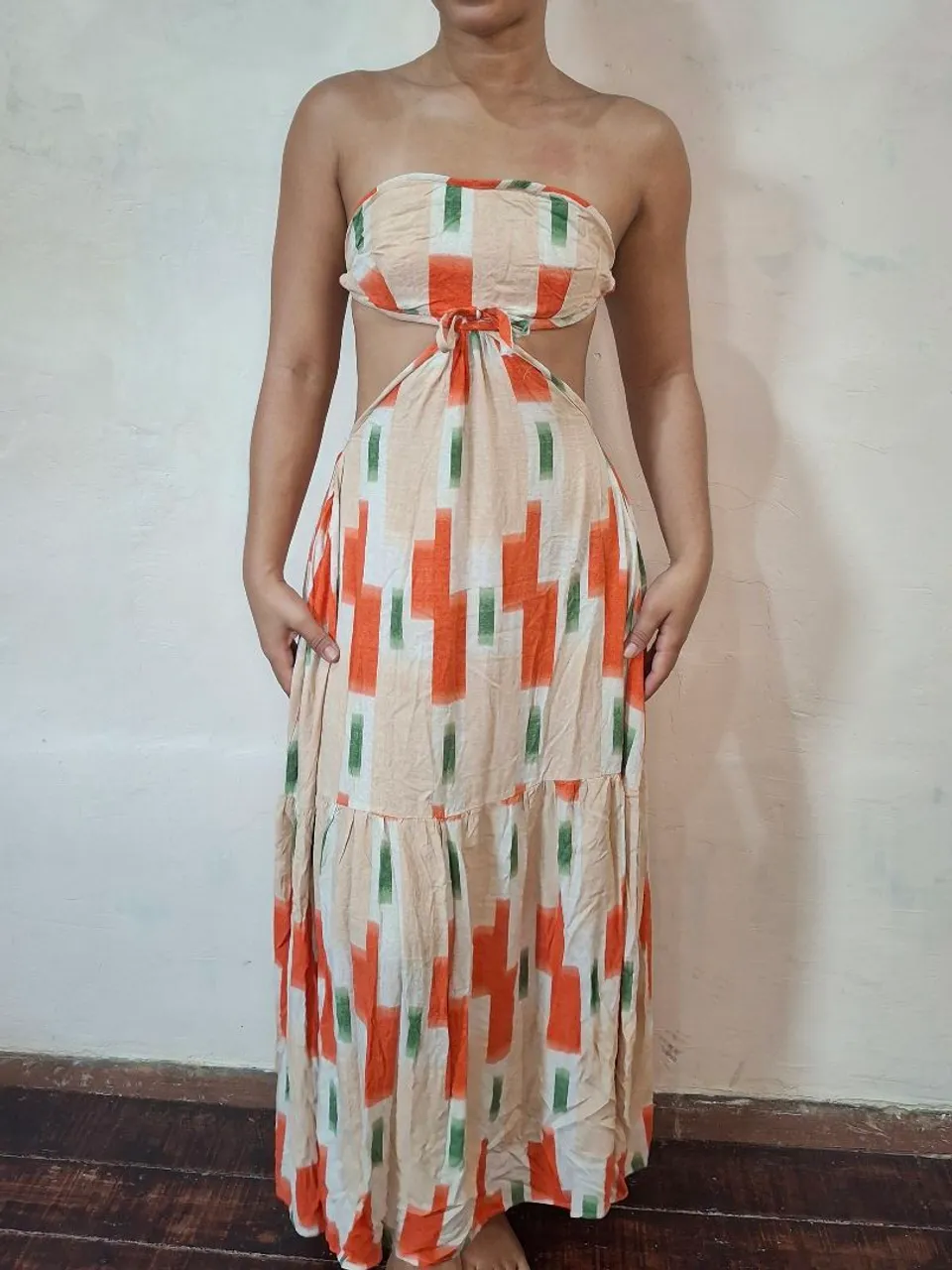 Vestido longo com design moderno e cores vibrantes, perfeito para um visual estiloso e confortável. Ideal para diversas ocasiões, este vestido é a escolha certa para quem busca elegância e personalidade.
