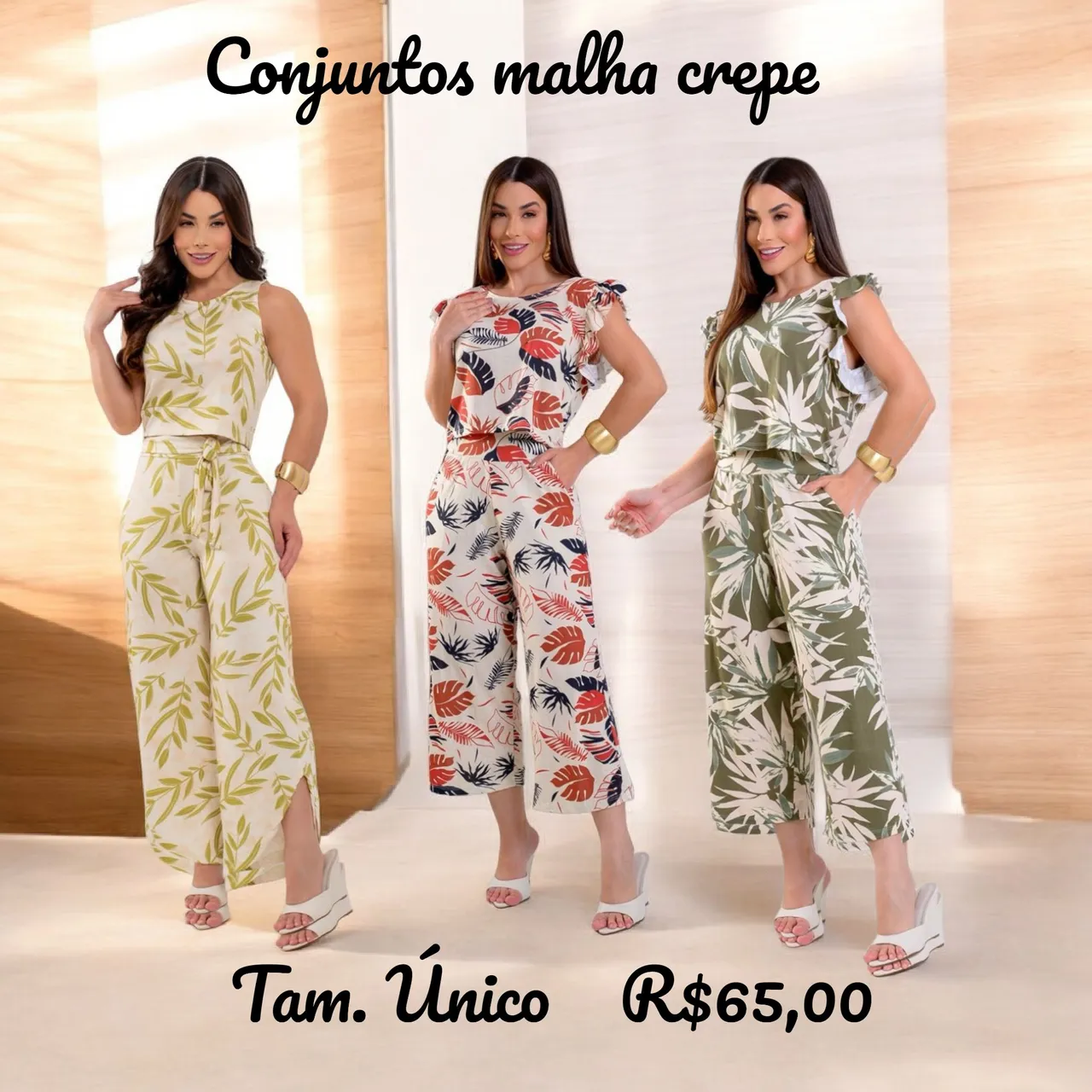Conjuntos estilosos e confortáveis em malha crepe, perfeitos para diversas ocasiões! Disponíveis em estampas vibrantes e tamanhos únicos, para você arrasar no seu dia a dia.