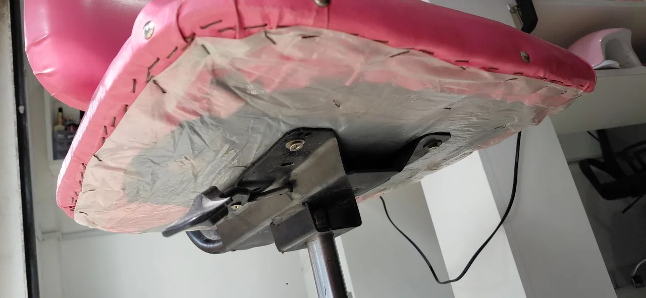 Vendo cadeira giratória para salão de beleza/ manicure, como consta na foto a cadeira não está rasgada, apenas pequenas marcas de uso e duas rodas não estão funcionando, o pistão está funcionando perfeitamente.