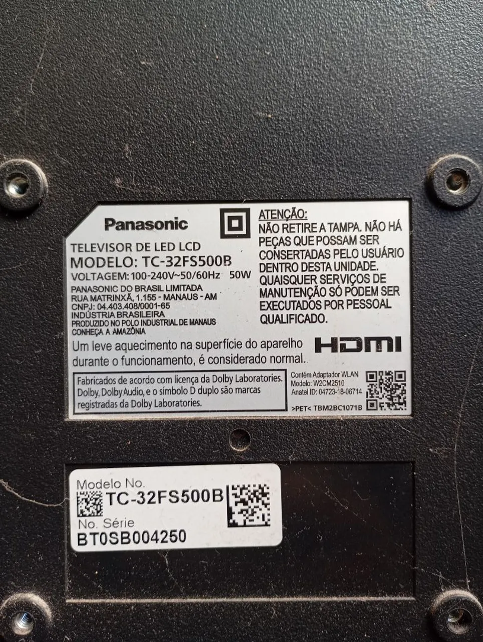 TV LED Panasonic, modelo TC-32FS500B. Com a tela quebrada parte eletrônica funcionando bem, para quem tem uma com defeito e a tela inteira