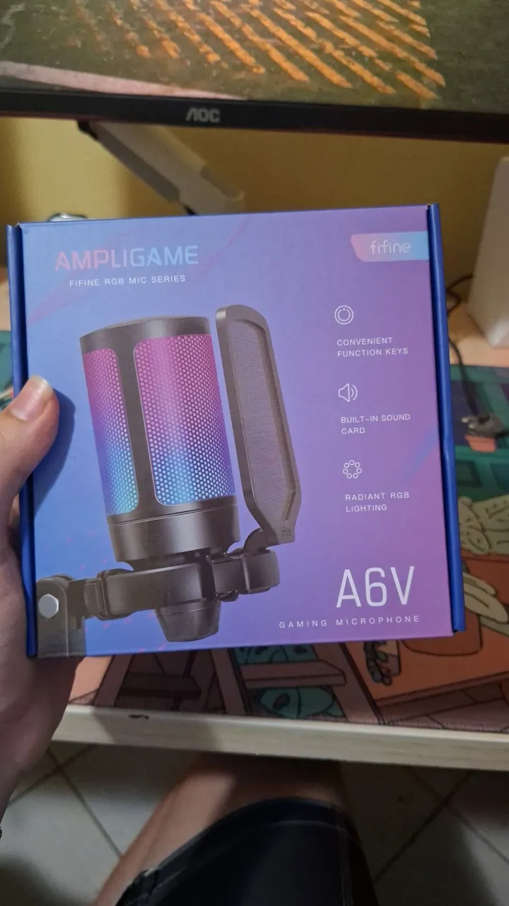 Microfone Fifine A6V, ideal para gamers e criadores de conteúdo! Com iluminação RGB vibrante, este microfone oferece áudio de alta qualidade e design moderno. Perfeito para suas lives e gravações!