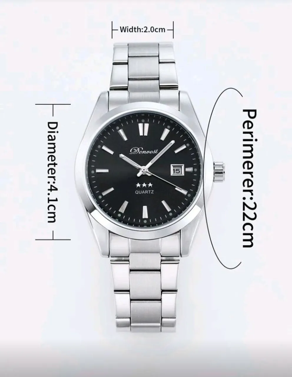 Relógio de pulso Denvost Quartz com design elegante e pulseira de aço inoxidável. Perfeito para quem busca estilo e precisão.