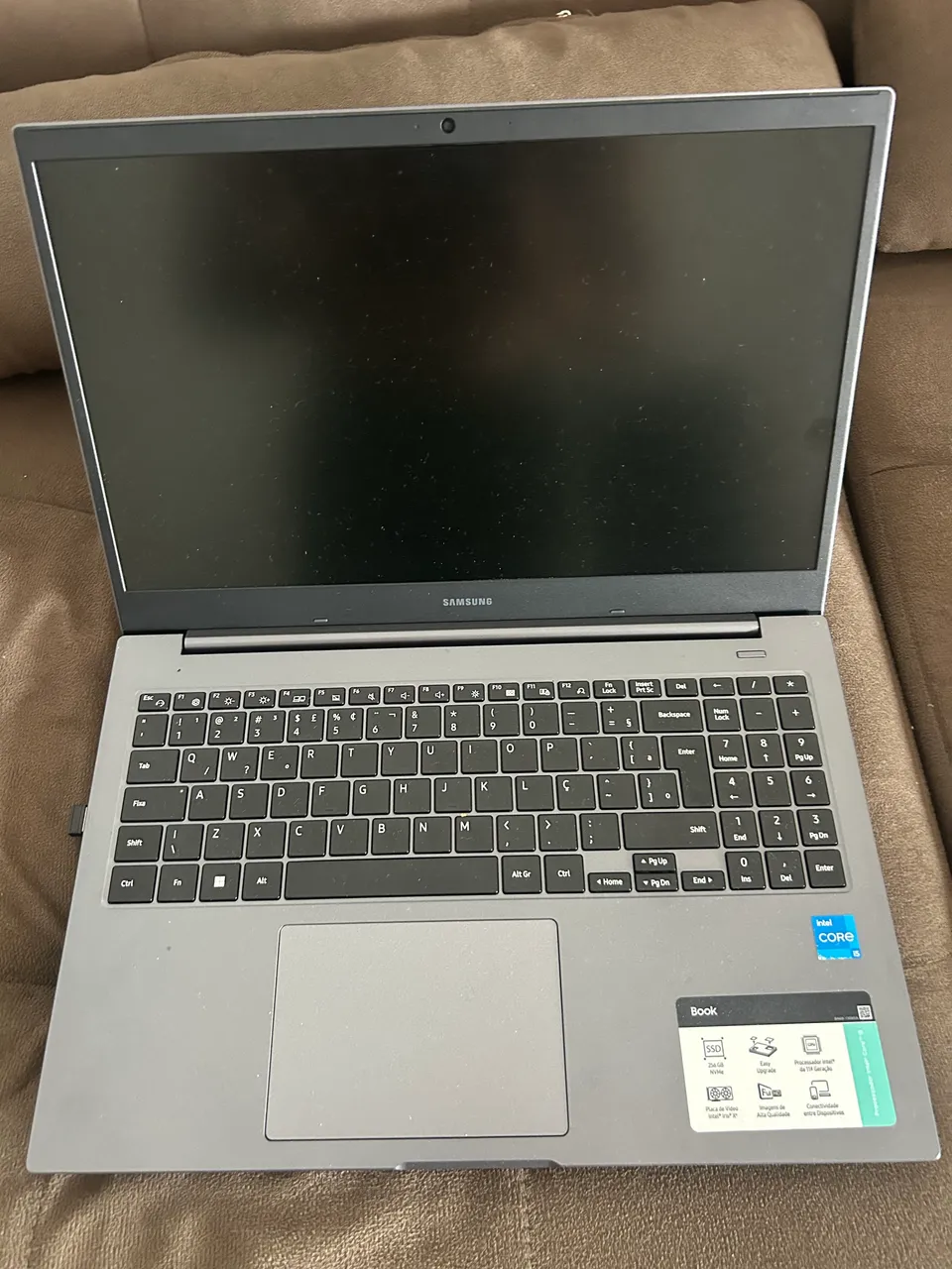 Notebook Samsung com design elegante e tela de alta resolução para uma experiência visual imersiva. Desempenho rápido e eficiente para suas tarefas diárias.