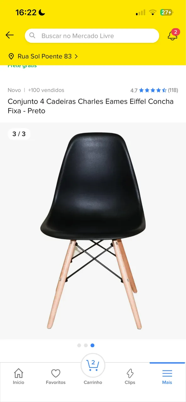 Conjunto de 4 cadeiras Charles Eames Eiffel Concha Fixa na cor preta, design moderno e elegante para sua casa. Perfeitas para sala de jantar ou escritório.