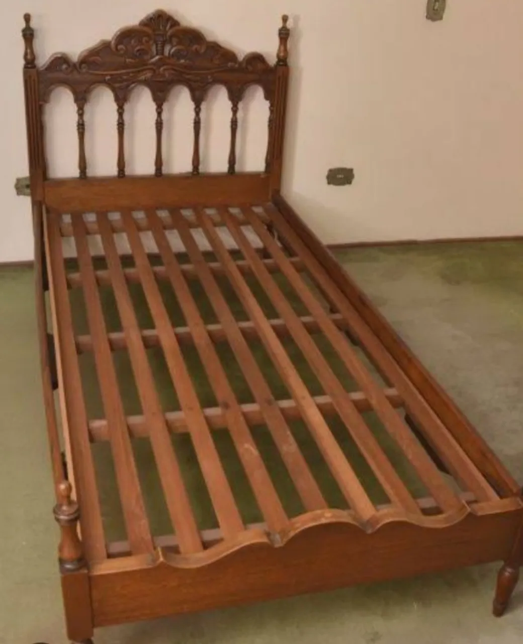 Linda cama de madeira entalhada, com design clássico e detalhes elegantes. Perfeita para adicionar charme e requinte ao seu quarto.