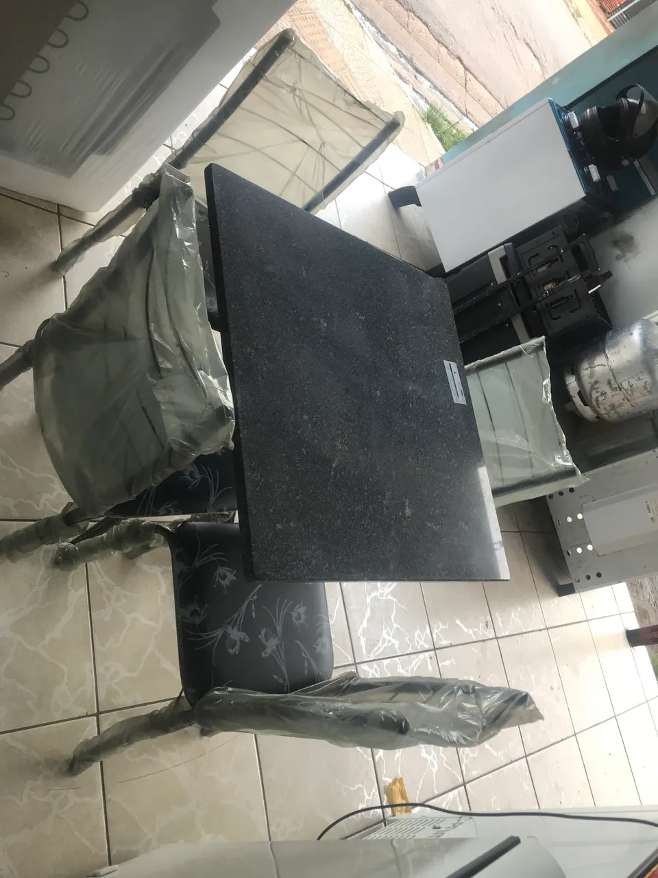 Linda mesa para sua casa! Design moderno e resistente, perfeita para diversos ambientes. Detalhes que combinam beleza e funcionalidade.mesa de mármore nova 4 cadeiras