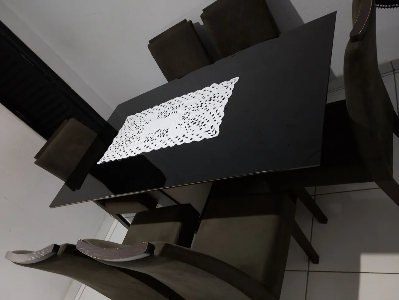 Linda mesa de jantar preta com design moderno, perfeita para reunir a família e amigos. Adicione elegância e sofisticação à sua sala de jantar! Tratar com Raimundo lacy,ZAP 949... ver número