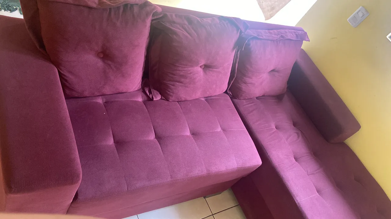 Sofá confortável e espaçoso, ideal para relaxar e receber visitas. Perfeito para sua sala!