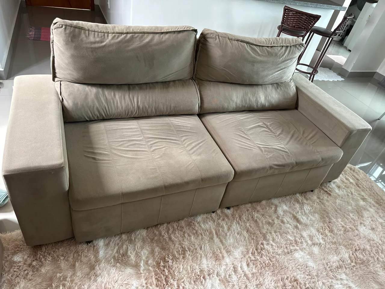 Sofá cama confortável e espaçoso, perfeito para relaxar e receber visitas. Design moderno e elegante que se adapta a qualquer ambiente.