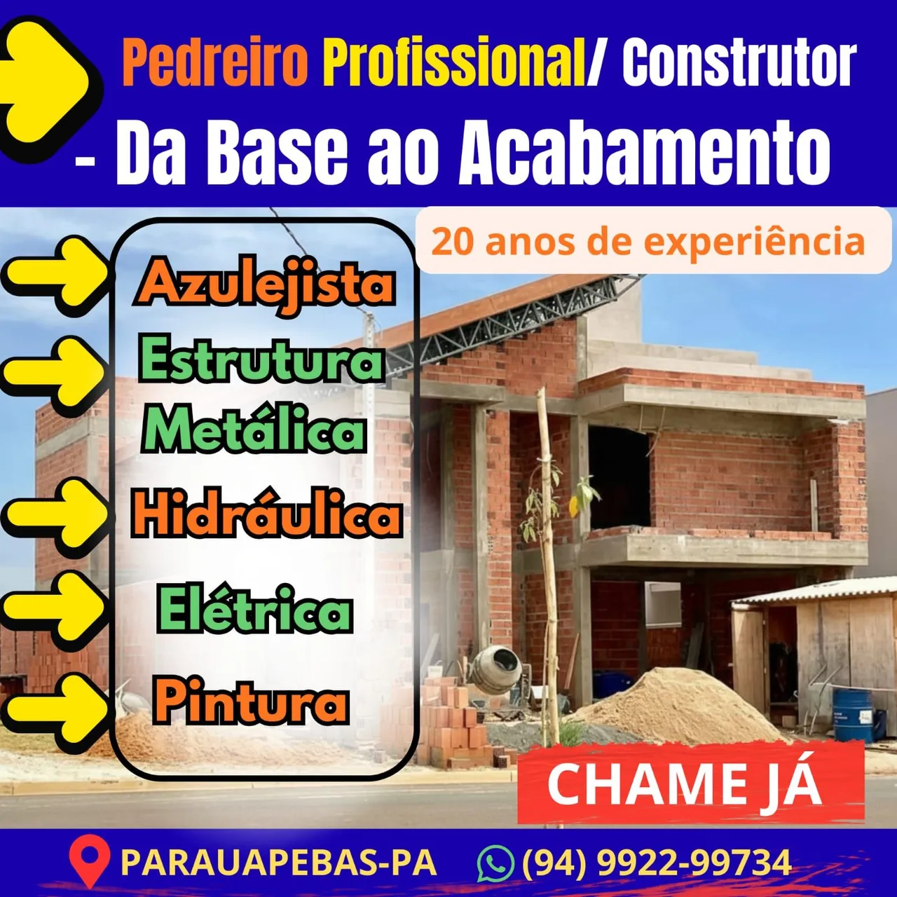 ?Sou o Cláudio, profissional especializado na construção civil? com mais de 20 anos de experiência no mercado. Realizo desde pequenos reparos até grandes construções, garantindo um serviço limpo, organizado e dentro do prazo.