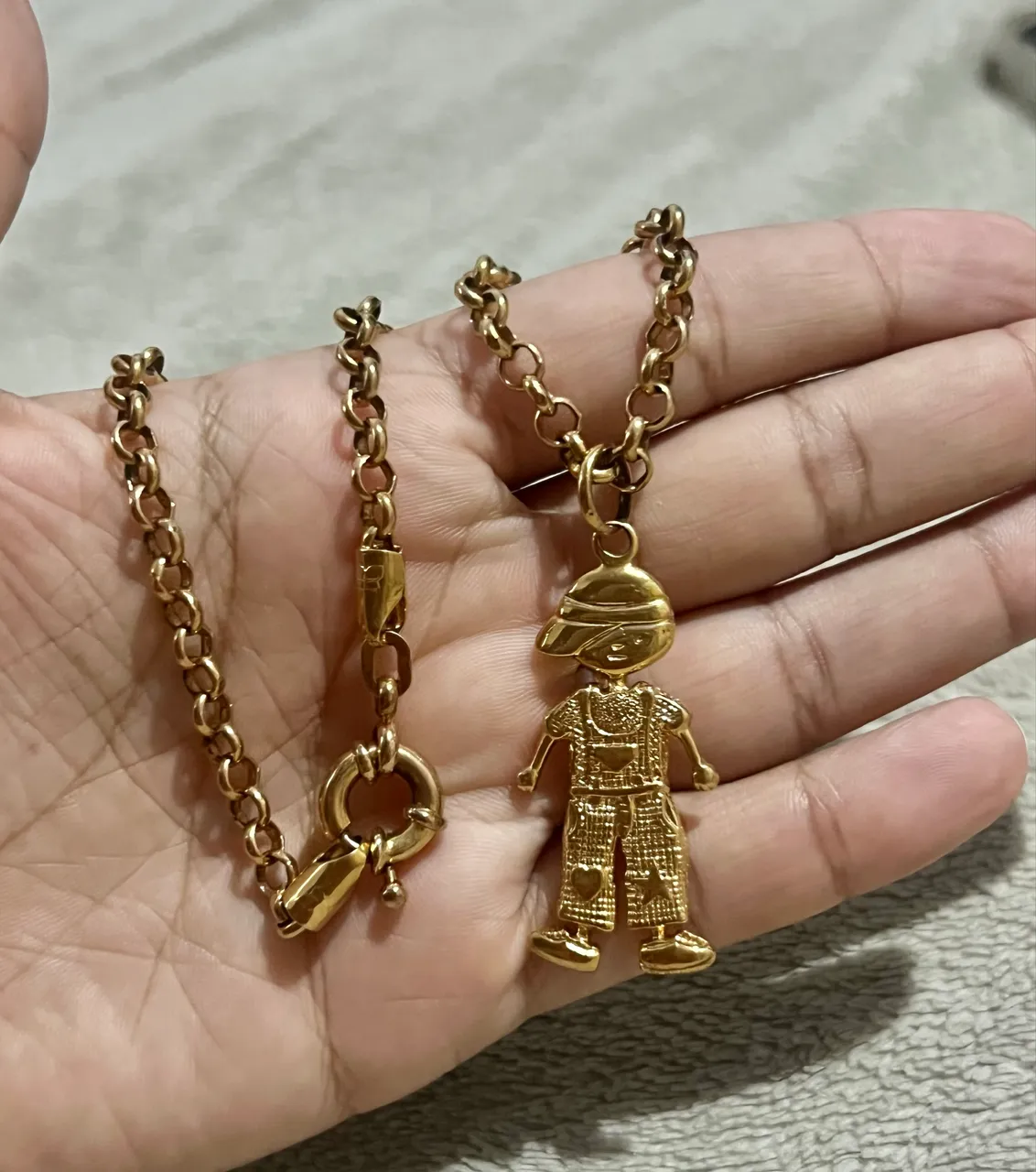 Lindo conjunto Rommael, corrente elo português e pingente menino
