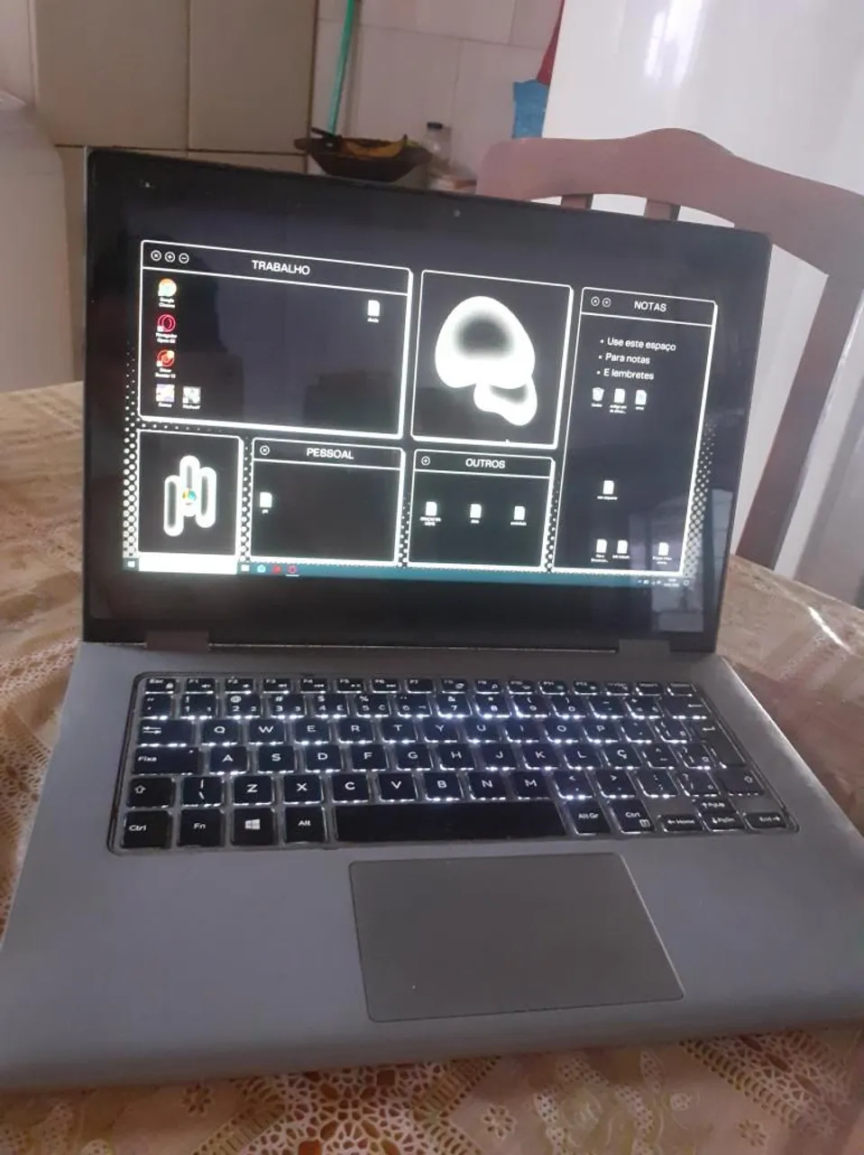 Notebook bom pra uso diário para trabalho e para jogos, está apenas com um trincado na tela no canto superior esquerdo, mas funciona perfeitamente