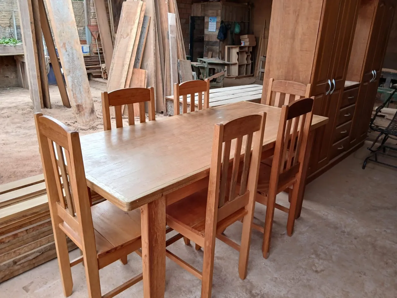 Conjunto de mesa e cadeiras de madeira, ideal para sua sala de jantar. Design clássico e elegante, perfeito para reunir a família e amigos. Se você interessa liga ou chama no zap Aceito cartões de crédito faço a entrega